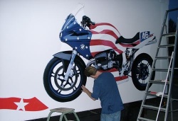 Die Ausführungen sind manchmal nur ein kurzer und auffälliger Text und manchmal eine künstlerische Darstellung, die vorallem auf Motorrädern lackiert wird.